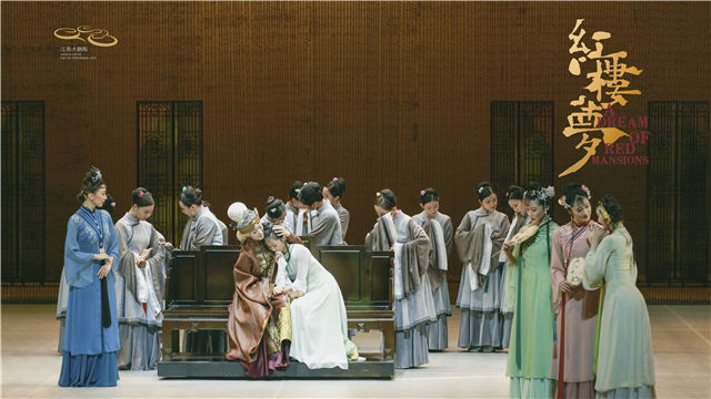 江苏大剧院原创民族舞剧《红楼梦》以贾宝玉与林黛玉、薛宝钗的爱情为主线,在秉承尊重原著的原则同时,邀请了年轻且具有丰富想象力和创新追求的优秀艺术家为其注入独特的现代审美和意义。视觉上借鉴明清古画的美学特质,旨在展现端庄古雅的舞蹈群像;多处运用了富有中国特色的古典符号,既是对中华民族优秀传统文化的致敬,也以年轻一代视角对民族文学经典进行重新演绎。
