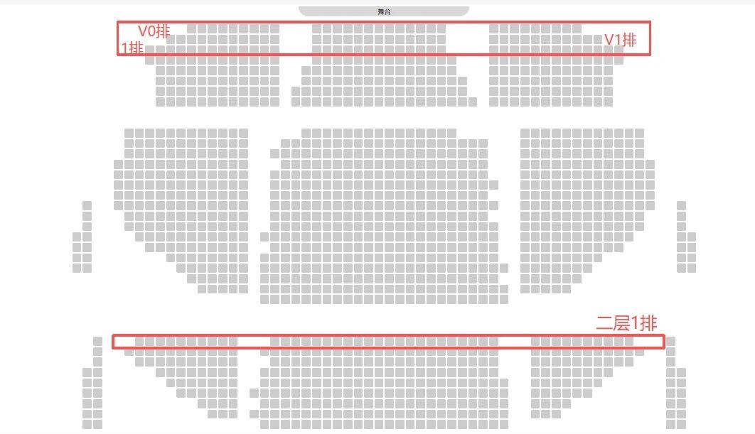 注:本场演出开放V0排-V1排及二层1排。其中,V0排-1排为同一平面,视线有部分遮挡;二层观众厅为考虑观众安全问题,设有安全防护栏,部分座位有一定视线影响,介意勿购。