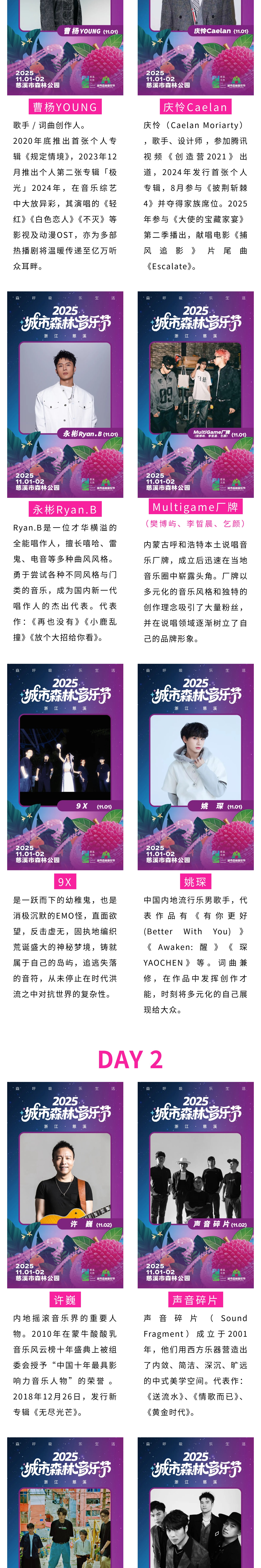 首页 > 演唱会 > 「王栎鑫/沙一汀/许巍」2025慈溪城市森林音乐节