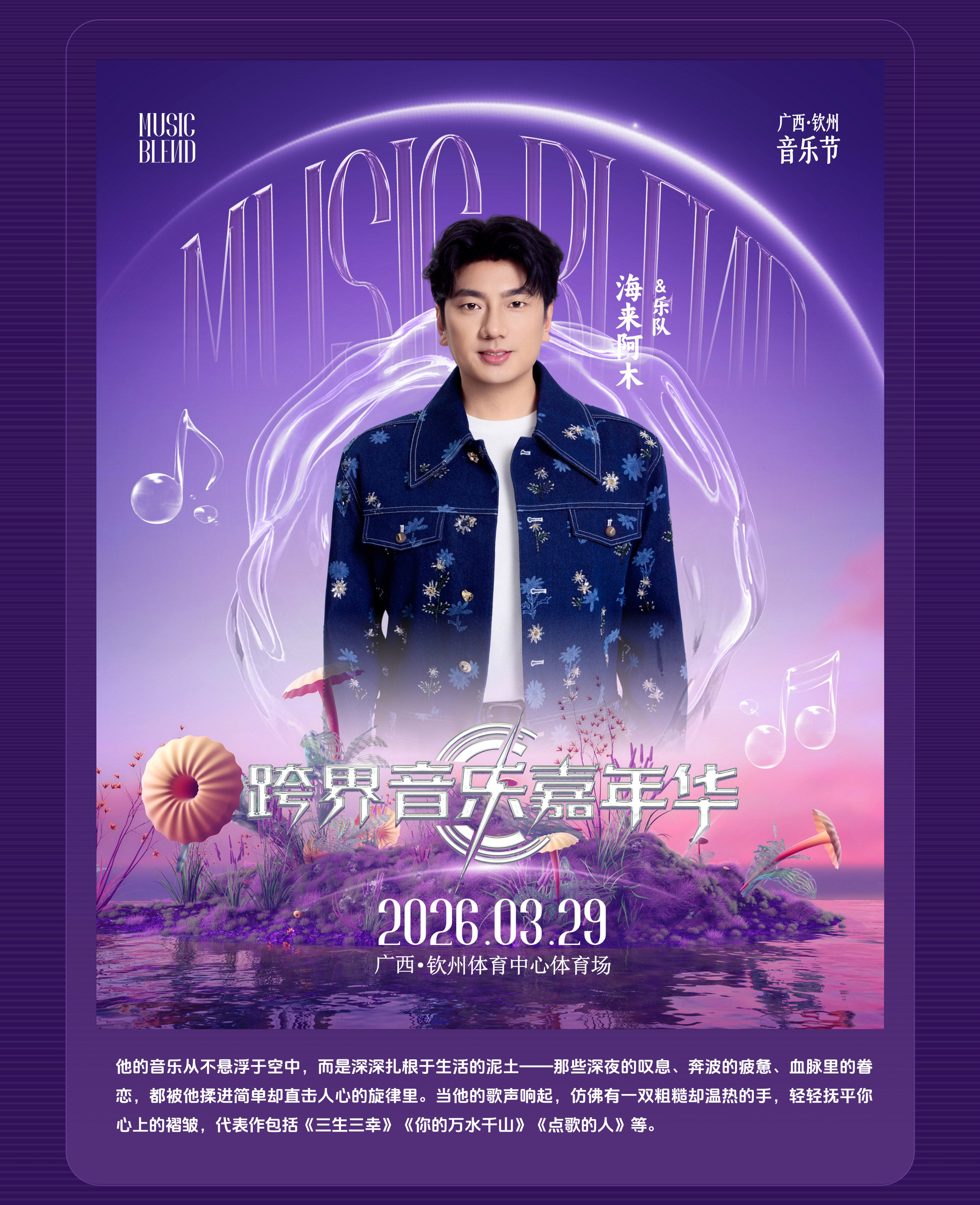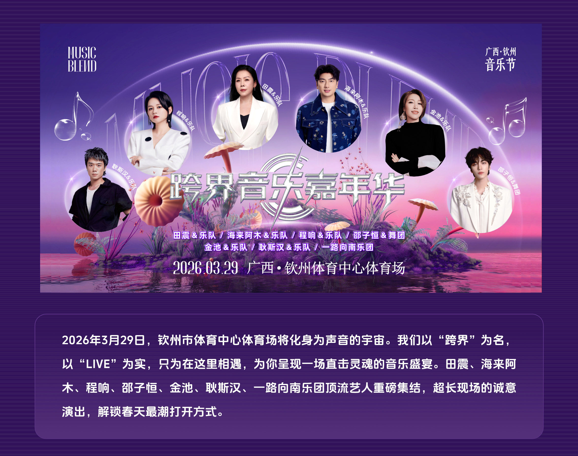 首页 > 演唱会 > 「田震/海来阿木/金池」2026MUSICBLEND跨界音乐嘉年华一钦州音乐节