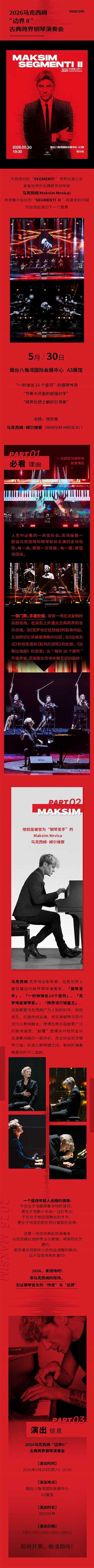 2026马克西姆“边界II”古典跨界钢琴演奏会-烟台站
