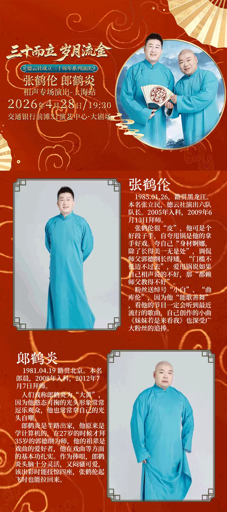 1.演出票品为特殊商品,除不可抗力因素导致演出取消外,订单不支持退换,可在平台转售; 2.演出详情仅供参考,具体以主办方公布信息及现场为准,请准时到场以免错过演出; 3.有票官方确保售出票品真实有效,请放心购买; 4.根据演出火爆情况,有票平台可能会将您所选的快递送票、上门自取等取票方式调整为现场取票,敬请谅解; 5.平台会尽力促使卖家履行交易协议,如果卖家付票过程中发生问题,本平台可协调相同或更高票挡的票品代替,否则平台将全额退款并按订单上约定的赔付方式与金额向用户进行赔付; 6.为了安全起见需要本人签收,演出快递票均为快递费到付(不包邮),请知晓!