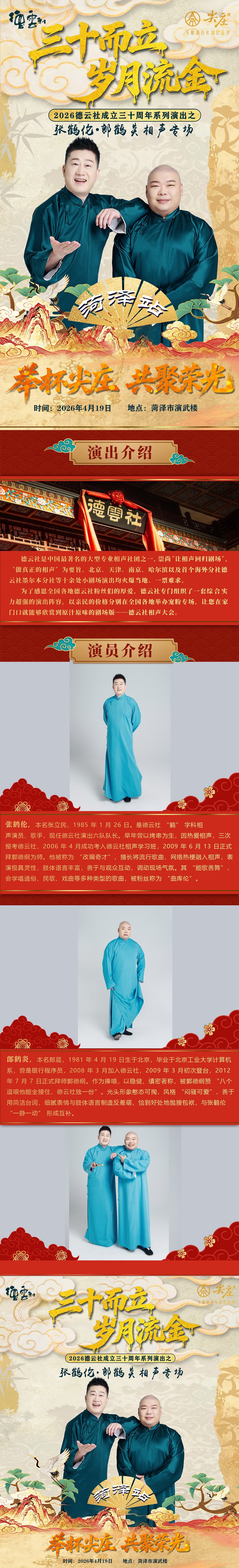首页 > 曲艺杂谈 > “三十而立 岁月流金”2026德云社张鹤伦·郎鹤炎相声专场-菏泽站