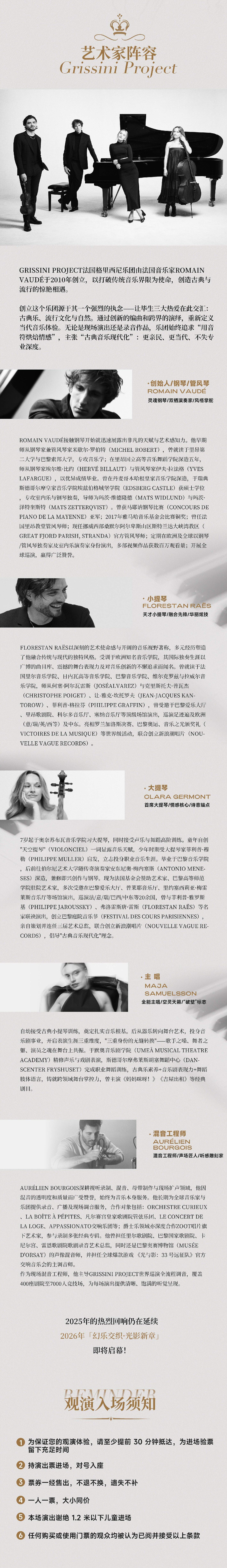 首页 > 音乐会 > 法国Grissini Project 格里西尼乐团「幻乐交织・光影新章」2026 巡回音乐会