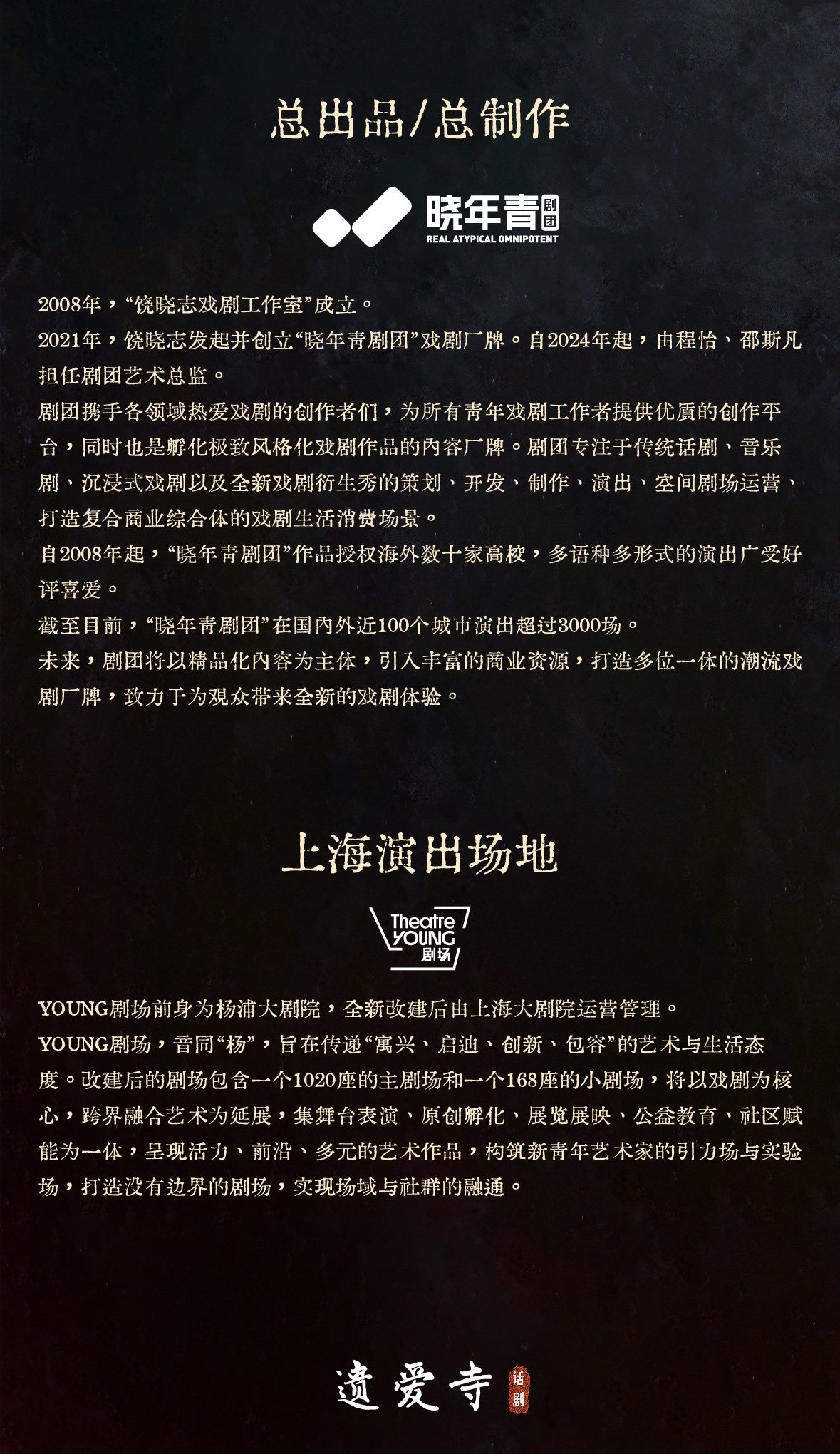 1.演出票品为特殊商品,除不可抗力因素导致演出取消外,订单不支持退换,可在平台转售; 2.演出详情仅供参考,具体以主办方公布信息及现场为准,请准时到场以免错过演出; 3.有票官方确保售出票品真实有效,请放心购买; 4.根据演出火爆情况,有票平台可能会将您所选的快递送票、上门自取等取票方式调整为现场取票,敬请谅解; 5.平台会尽力促使卖家履行交易协议,如果卖家付票过程中发生问题,本平台可协调相同或更高票挡的票品代替,否则平台将全额退款并按订单上约定的赔付方式与金额向用户进行赔付; 6.为了安全起见需要本人签收,演出快递票均为快递费到付(不包邮),请知晓!