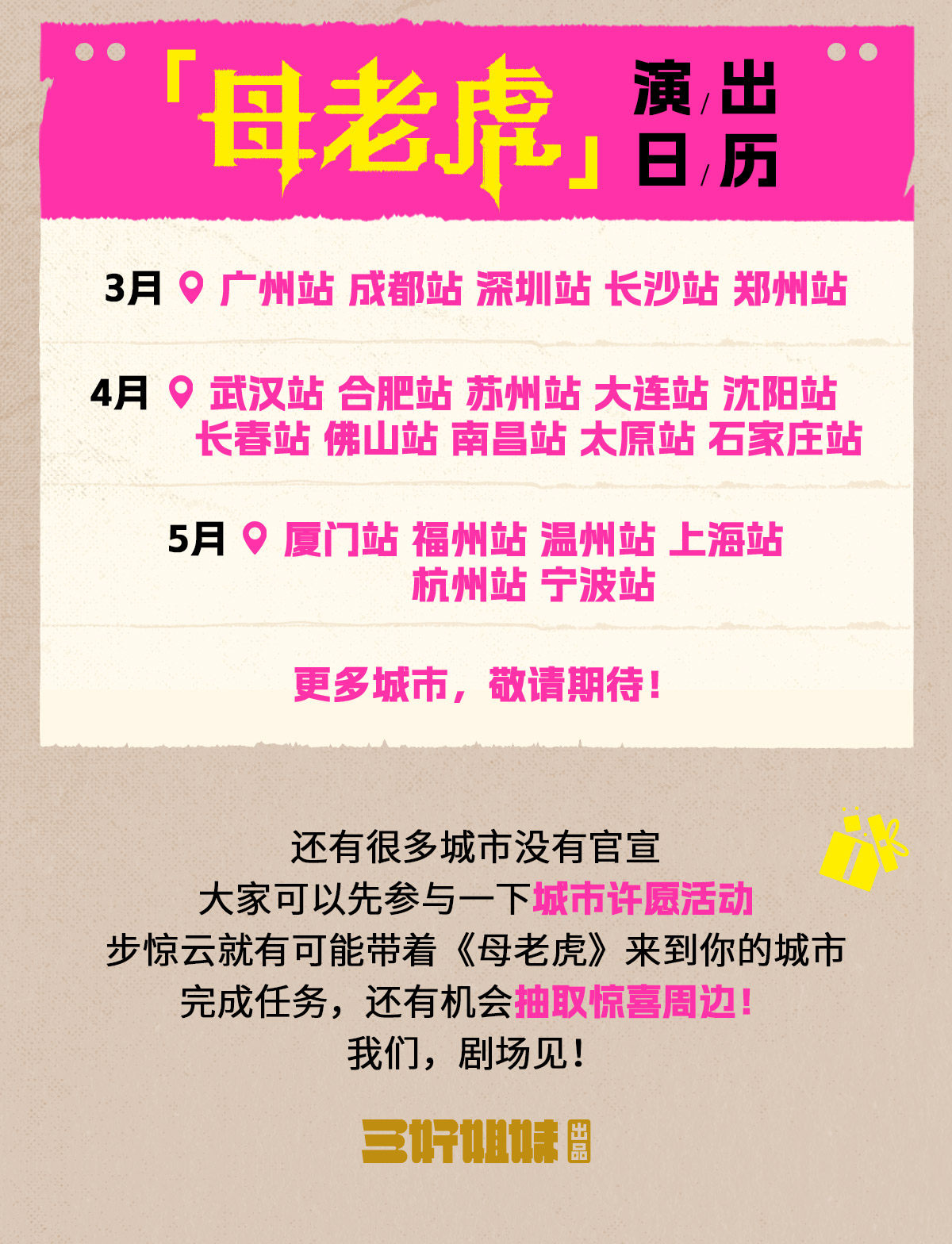 1.演出票品为特殊商品,除不可抗力因素导致演出取消外,订单不支持退换,可在平台转售; 2.演出详情仅供参考,具体以主办方公布信息及现场为准,请准时到场以免错过演出; 3.有票官方确保售出票品真实有效,请放心购买; 4.根据演出火爆情况,有票平台可能会将您所选的快递送票、上门自取等取票方式调整为现场取票,敬请谅解; 5.平台会尽力促使卖家履行交易协议,如果卖家付票过程中发生问题,本平台可协调相同或更高票挡的票品代替,否则平台将全额退款并按订单上约定的赔付方式与金额向用户进行赔付; 6.为了安全起见需要本人签收,演出快递票均为快递费到付(不包邮),请知晓!