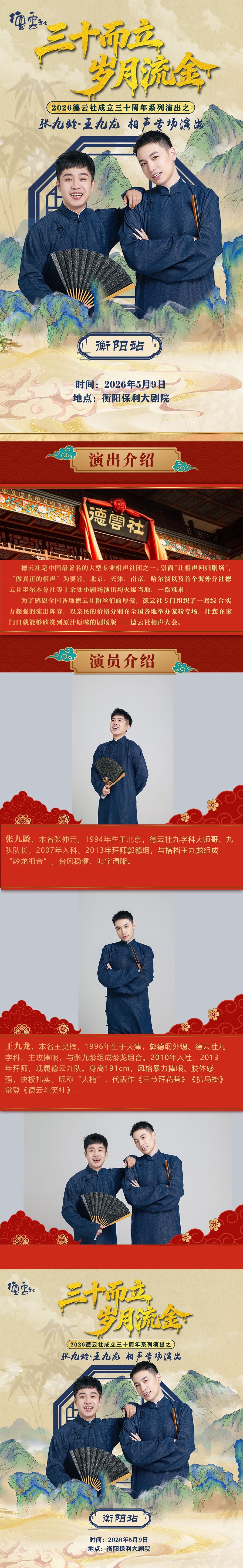 首页 > 曲艺杂谈 > “三十而立 岁月流金” 2026德云社成立三十周年系列演出之 张九龄•王九龙相声专场演出-衡阳站