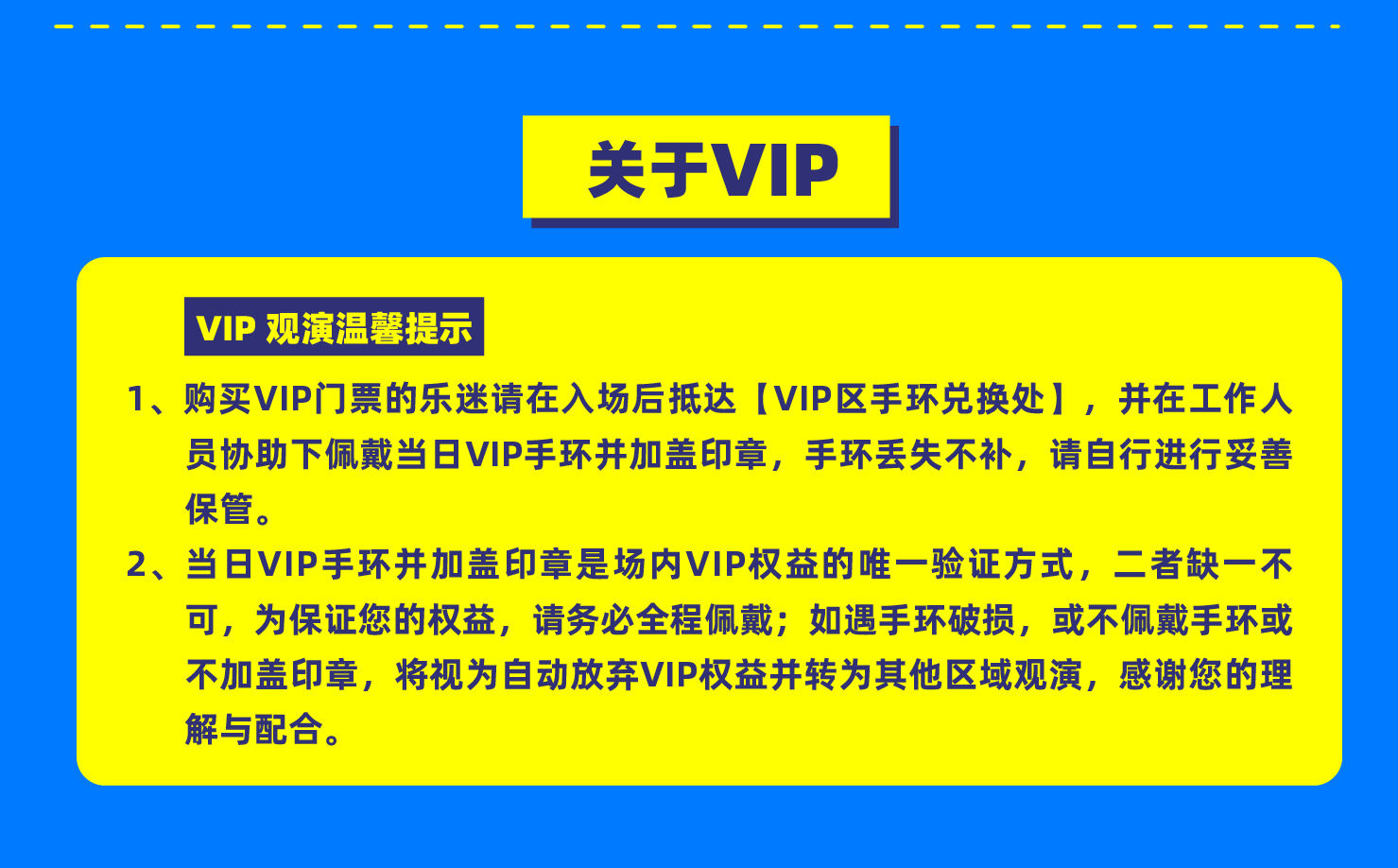 1.演出票品为特殊商品,除不可抗力因素导致演出取消外,订单不支持退换,可在平台转售; 2.演出详情仅供参考,具体以主办方公布信息及现场为准,请准时到场以免错过演出; 3.有票官方确保售出票品真实有效,请放心购买; 4.根据演出火爆情况,有票平台可能会将您所选的快递送票、上门自取等取票方式调整为现场取票,敬请谅解; 5.平台会尽力促使卖家履行交易协议,如果卖家付票过程中发生问题,本平台可协调相同或更高票挡的票品代替,否则平台将全额退款并按订单上约定的赔付方式与金额向用户进行赔付; 6.为了安全起见需要本人签收,演出快递票均为快递费到付(不包邮),请知晓!