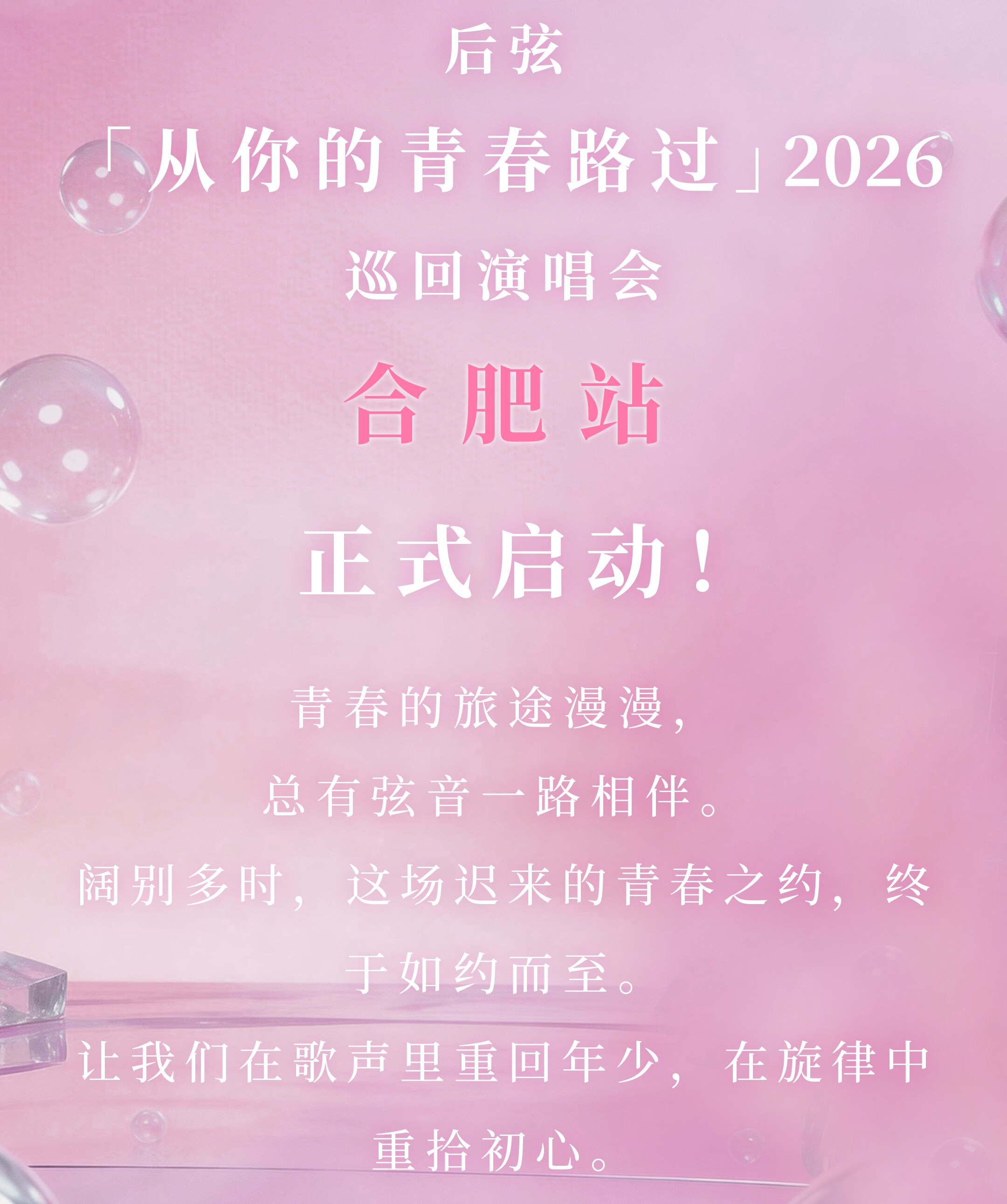 首页 > 演唱会 > 后弦“从你的青春路过”2026巡回演唱会-合肥站