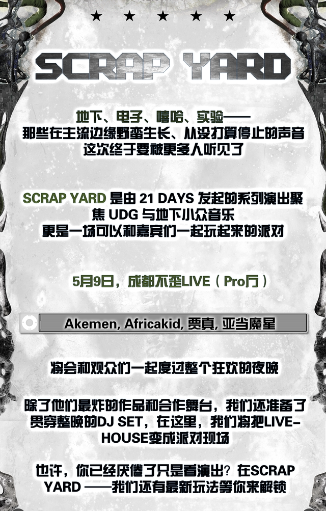 首页 > 演唱会 > SCRAP YARD成都站