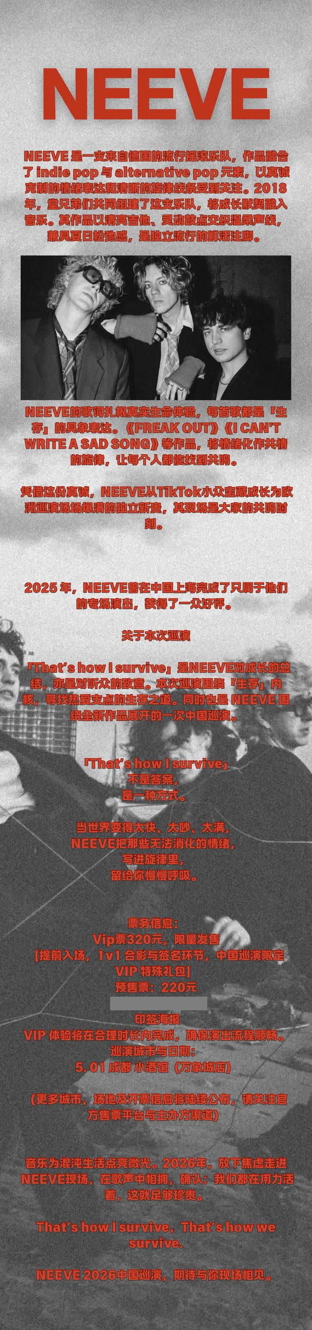德国流行摇滚乐队NEEVE2026巡演——成都站
