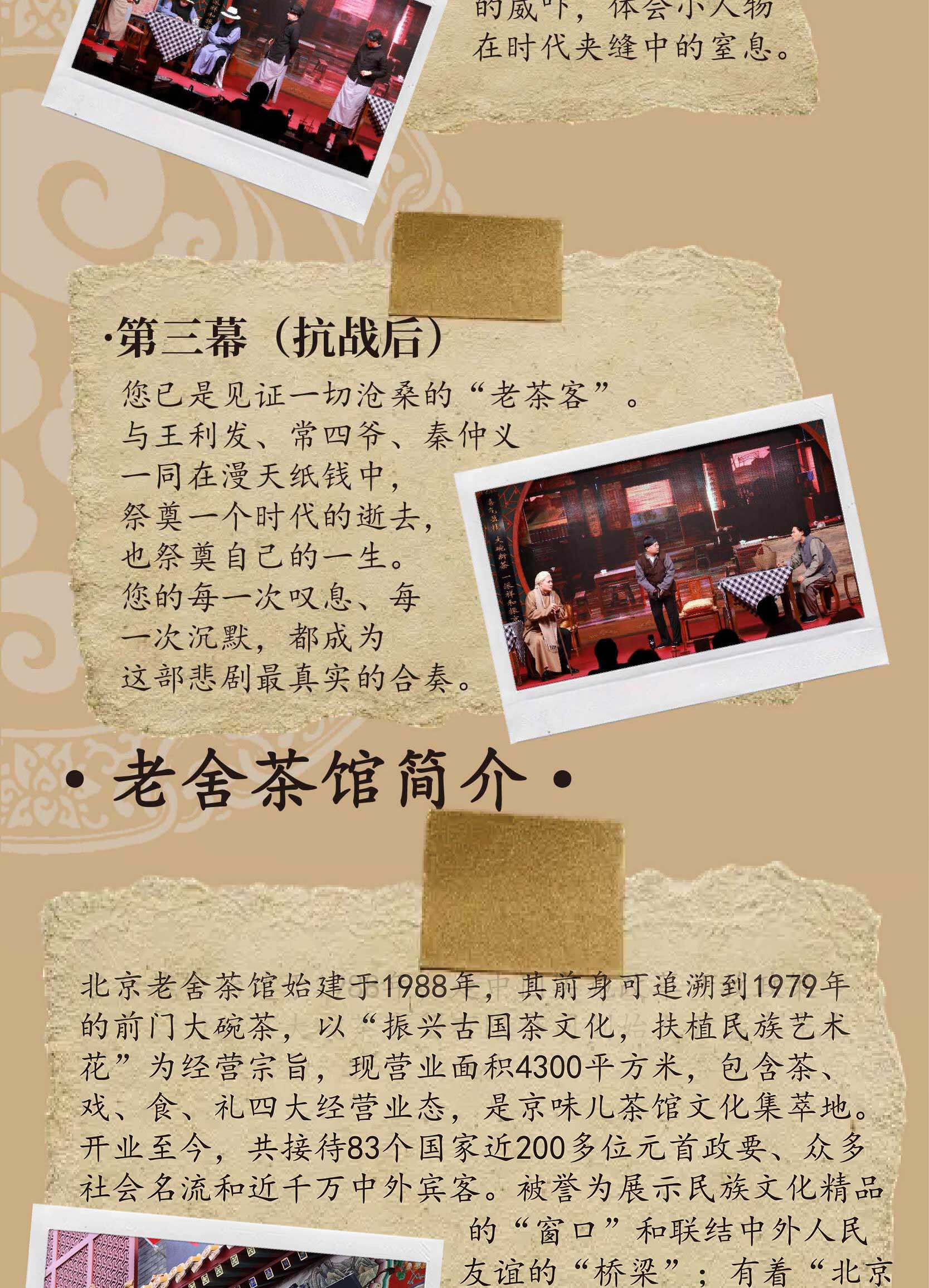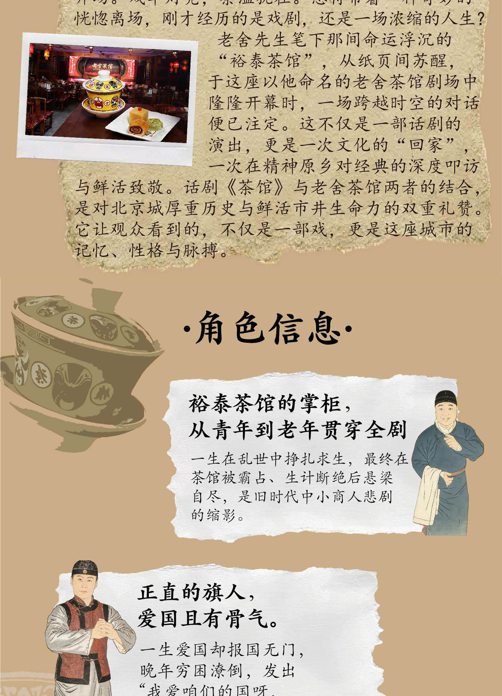 话剧《茶馆》与老舍茶馆两者的结合,是对北京城厚重历史与鲜活市井生命力的双重礼赞。它让观众看到的,不仅是一部戏,更是这座城市的记忆、性格与脉搏。