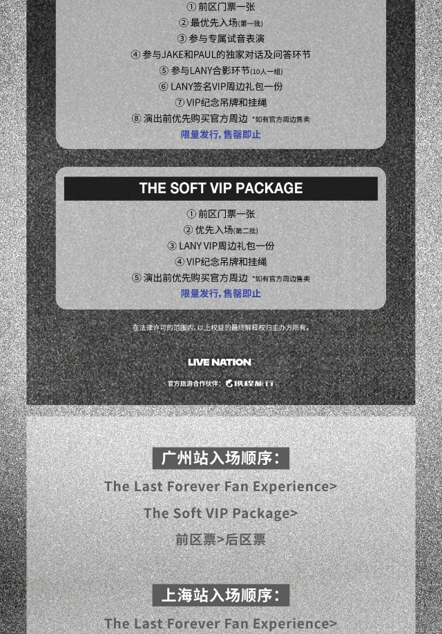 1.演出票品为特殊商品,除不可抗力因素导致演出取消外,订单不支持退换,可在平台转售; 2.演出详情仅供参考,具体以主办方公布信息及现场为准,请准时到场以免错过演出; 3.有票官方确保售出票品真实有效,请放心购买; 4.根据演出火爆情况,有票平台可能会将您所选的快递送票、上门自取等取票方式调整为现场取票,敬请谅解; 5.平台会尽力促使卖家履行交易协议,如果卖家付票过程中发生问题,本平台可协调相同或更高票挡的票品代替,否则平台将全额退款并按订单上约定的赔付方式与金额向用户进行赔付; 6.为了安全起见需要本人签收,演出快递票均为快递费到付(不包邮),请知晓!