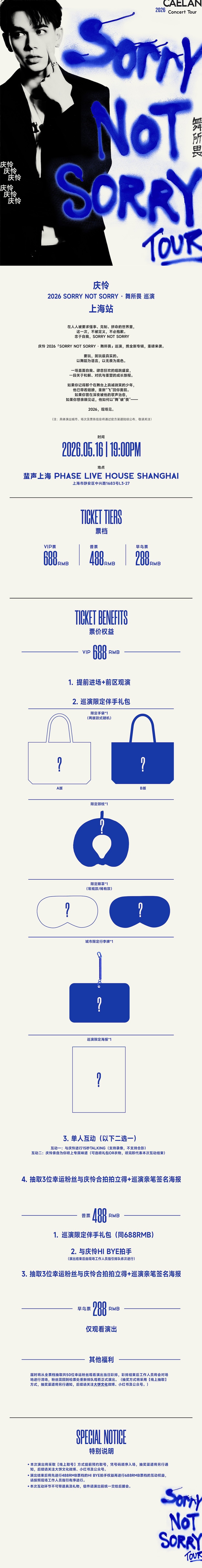 1.演出票品为特殊商品,除不可抗力因素导致演出取消外,订单不支持退换,可在平台转售; 2.演出详情仅供参考,具体以主办方公布信息及现场为准,请准时到场以免错过演出; 3.有票官方确保售出票品真实有效,请放心购买; 4.根据演出火爆情况,有票平台可能会将您所选的快递送票、上门自取等取票方式调整为现场取票,敬请谅解; 5.平台会尽力促使卖家履行交易协议,如果卖家付票过程中发生问题,本平台可协调相同或更高票挡的票品代替,否则平台将全额退款并按订单上约定的赔付方式与金额向用户进行赔付; 6.为了安全起见需要本人签收,演出快递票均为快递费到付(不包邮),请知晓!