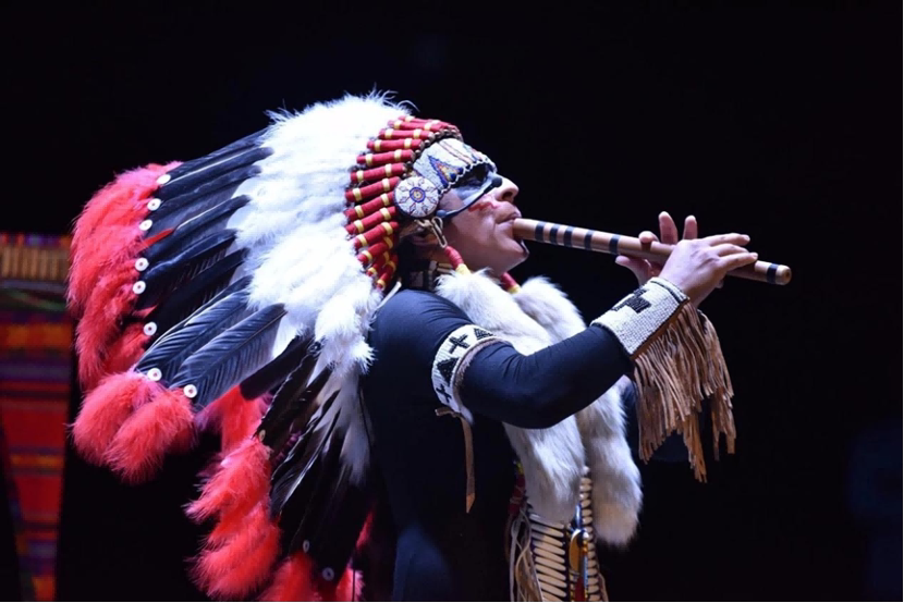 他是一位杰出的演奏家,用音乐讲述印第安文化,脸上涂着油彩,带着鹰羽冠头饰,手臂上缠着象征图腾的绑带,将人们的思绪一下子带回了原始的状态,闭眼,安静的听着他的演奏,仿佛回到了最平静的时光。